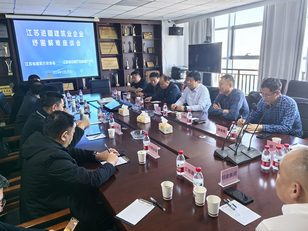 11月29日下午,江蘇省住建廳駐新疆辦事處協(xié)同江蘇省建筑行業(yè)協(xié)會(huì)赴新疆對(duì)口支援省民政廳確定的2024年社會(huì)組織協(xié)作幫扶重點(diǎn)項(xiàng)目期間,在烏魯木齊聯(lián)合召開(kāi)了江蘇進(jìn)疆建筑業(yè)企業(yè)紓困解難座談會(huì)。協(xié)會(huì)副會(huì)長(zhǎng)兼秘書(shū)長(zhǎng)孫忠建、駐疆辦負(fù)責(zé)人吳清杰等參加座談。