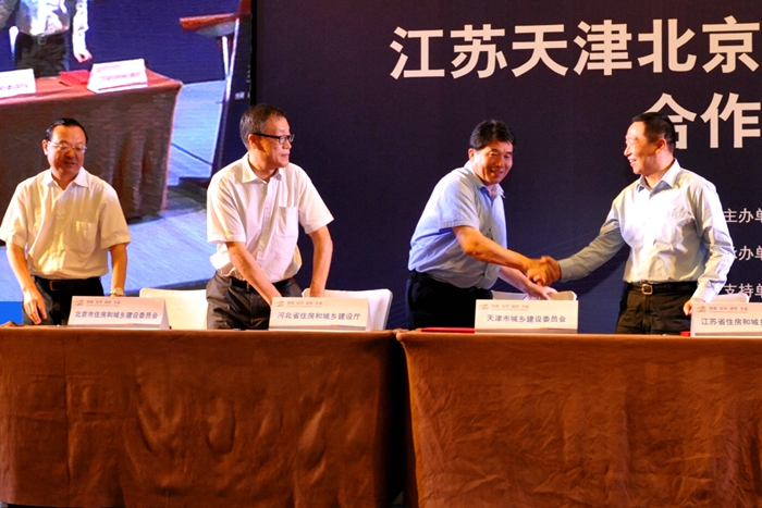 顧小平(右一)書記代表江蘇與京津冀建設主管部門簽署合作推進倡議書