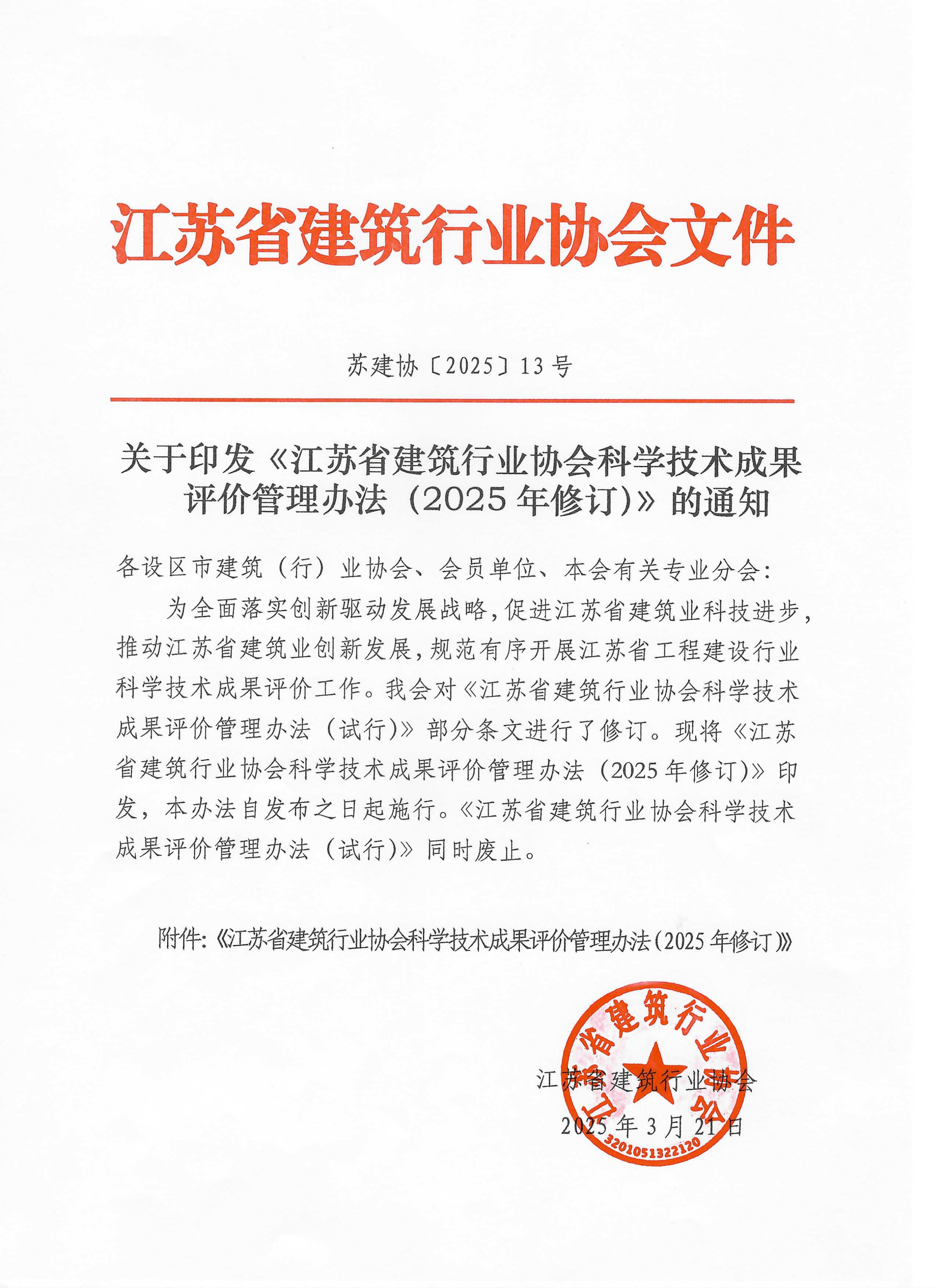 《江蘇省建筑行業(yè)協(xié)會科學技術成果評價管理辦法(2025年修訂)》