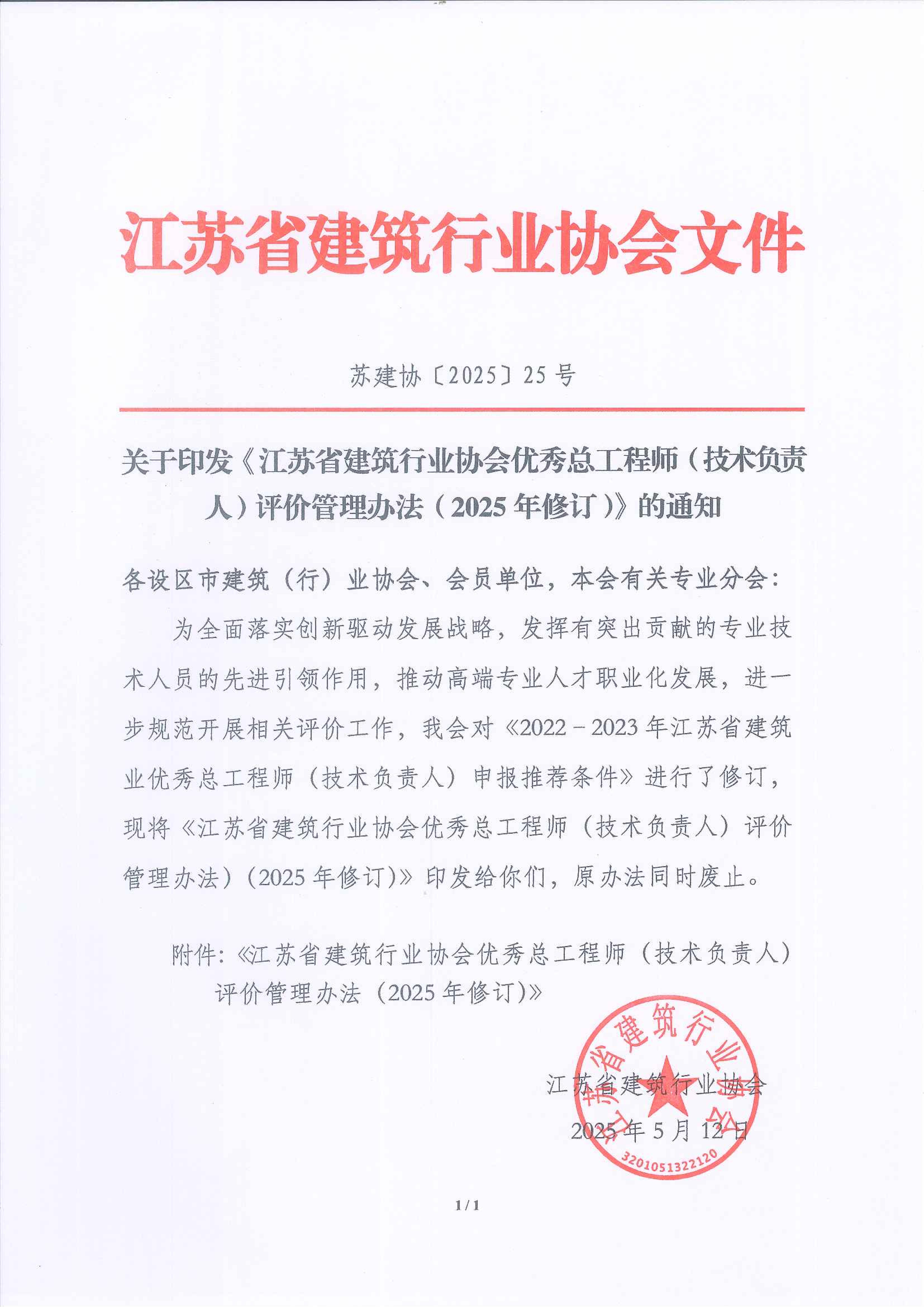 附件:《江蘇省建筑行業協會優秀總工程師(技術負責人)評價管理辦法(2025年修訂)》