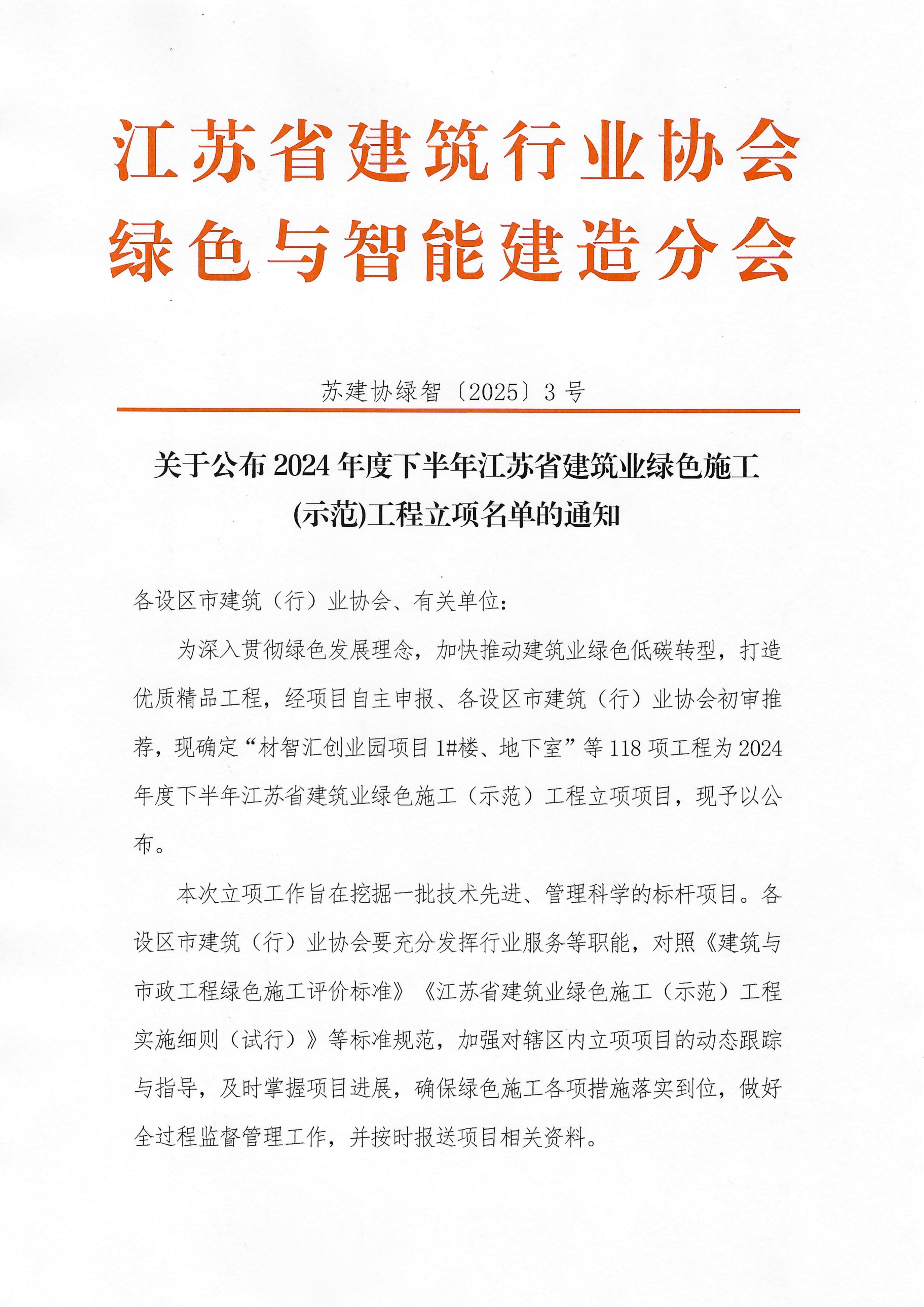 附件:2024年度下半年江蘇省綠色施工(示范)工程立項名單